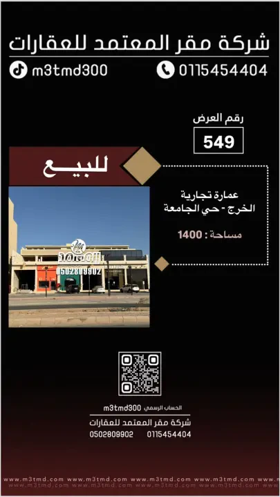 طلب اتصال | عمارة للبيع في حي الجامعة | عقار الخرج | عقارات الخرج | شركة مقر المعتمد للعقارات