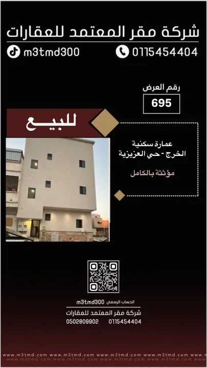 طلب اتصال | عمارة للبيع في حي العزيزية | عقار الخرج | عقارات الخرج | شركة مقر المعتمد للعقارات